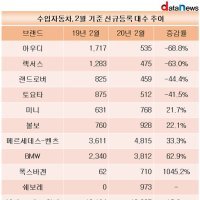 Çùȸ¿¡°ø½ÃµÈºê·£µåº°½Å±Ôµî·Ï´ë¼öÃßÀ̸¦ºÐ¼®ÇѰá°ú,¿ÃÇØ2¿ù½Å±Ôµî·ÏµÈ¼öÀÔÂ÷´ÂÃÑ1¸¸6725´ë·ÎÁý°èµÆ´Ù.Á÷Àü³âµµ(1¸¸5885´ë)´ëºñ5.3´Ã¾ú´Ù.°°Àº±â°£...